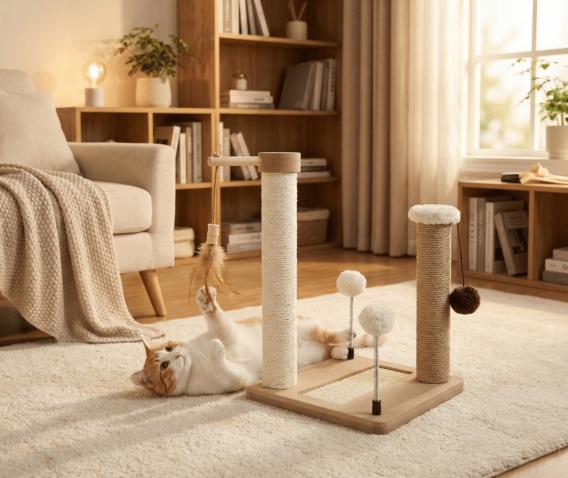 **Drapak dla kota 40 cm CT05** to kompaktowy i stabilny mebel, który umożliwia codzienną pielęgnację pazurów oraz aktywną zabawę. Dzięki niewielkim rozmiarom doskonale sprawdzi się w mniejszych mieszkaniach oraz jako pierwszy drapak dla młodego kota. Wytrzymały sznur sizalowy chroni meble przed zniszczeniem, a elementy zabawkowe zachęcają kota do ruchu i rozładowania energii. **Wymiary:** 40 × 30 × 30 cm **Materiał:** płyta MDF, sznur sizalowy i jutowy