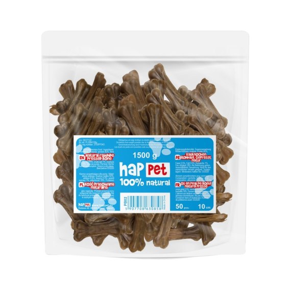 Kość naturalna prasowana 10cm (50szt.) Dla psów Kości firmy Happet produkowane są ze specjalnej masy przygotowywanej z rozgotowanej skóry wołowej, która następnie zostaje wysuszona i sprasowana na kształt prawdziwej kości. Dzięki tym procesom przysmak jest przyjemnie twardy, nie psuje się oraz pachnie i smakuje. Jest to wspaniała zabawka zapewniająca psu zajęcie na długie godziny, a także pyszny smakołyk. Produkt jest całkowicie bezpieczny, nie zawiera sztucznych zapachów, konserwantów, ani barwników, jest w 100% strawny. Kość naturalna to świetna zabawka i przydatna nagroda w trakcie treningu. Kość jest idealną zabawką, ale nie tylko: jest przysmakiem dla psa, dlatego może służyć jako nagroda zaspokaja potrzebę żucia i gryzienia, która jest niezwykle istotna zapewnia psu zajęcie na dłuższy czas w naturalny sposób dba o czyste zęby naszych pupili zapobiega osadzaniu się kamienia nazębnego masuje dziąsła wyróżnia się wysoką zawartością białka i niskim poziomem tłuszczu jest doskonała dla każdego psa, także dla psów mających problem z utrzymaniem prawidłowej wagi ściera naloty bakteryjne osadzające się na zwierzęcych zębach, mogące być przyczyną nieświeżego oddechu i chorób przyzębia żucie takich gryzaków rozładowuje napięcie i łagodzi wszelkie objawy stresu u psów można podawać między posiłkami nie wydają brzydkiego zapachu jak surowe kości Długość: 10 cm Opakowanie: 1,5 kg, 50 szt. Skład: skóra wołowa Analiza: białko 82%, włókno 0,5%, tłuszcz 0,5%, popiół surowy 1%, wilgotność 18% Pamiętaj! Przysmaki dla psów nie mogą zastąpić pokarmu podstawowego. Pomimo, że dostarczają niektórych składników pokarmowych, są tylko przyjemnym urozmaiceniem codziennej diety pupila. Nie podawać szczeniętom poniżej 3 miesiąca życia.