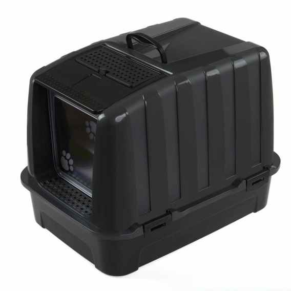 Kuweta Elite czarny Koty zostały udomowione około 9500 lat temu. Od początku tej międzygatunkowej przyjaźni staramy się, żeby nasze wspólne życie z mruczkami było wygodne. Jednym z wynalazków które zdecydowanie podniosły komfort obu stron była kuweta. Pudło o prostej budowie, wypełnione żwirkiem lub trocinami, na co dzień ułatwia kotu załatwianie potrzeb fizjologicznych w domu bez udziału człowieka. Przez lata produkt ten przybierał najróżniejsze kształty i kolory oraz był urozmaicany o różne udogodnienia, jednak jego funkcja pozostaje taka sama. Prezentujemy zabudowaną kuwetę, która łączy w sobie wiele praktycznych rozwiązań. Przede wszystkim zapobiega roznoszeniu się żwirku, nawet jeśli kot lubi bardzo intensywnie kopać w kuwecie. Dodatkowo zapewnia mruczkowi sporo prywatności, co w zależności od charakteru zwierzęcia może być kluczowe dla bezstresowego korzystania z toalety. Kuweta posiada drzwiczki na zawiasach oraz wygodną rączkę do transportu. Cała górna część kuwety jest zdejmowana, zamontowana na prostych w użyciu klipsach, co ułatwia jej czyszczenie. Produkt został wykonany z trwałego, bezpiecznego dla zwierząt materiału. Kolor: czarny Długość: 51,5 cm Szerokość: 38 cm Wysokość: 38 cm
