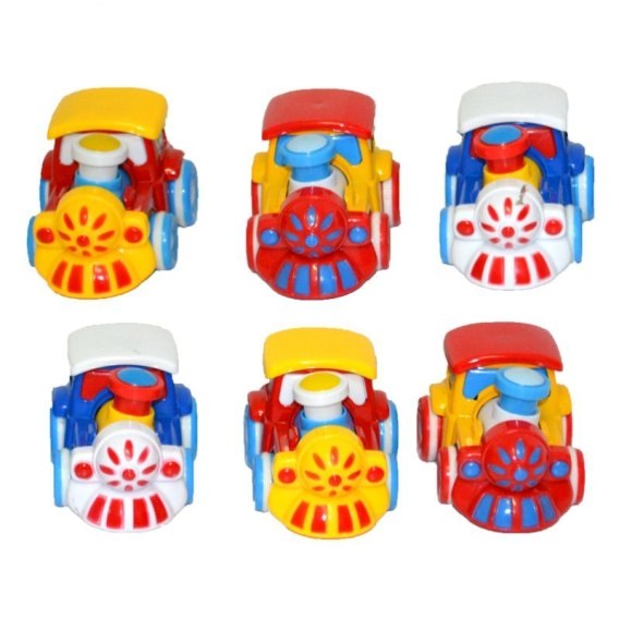 Zabawka posiada napęd frykcyjny. Podczas poruszania się lokomotywa porusza kominem.